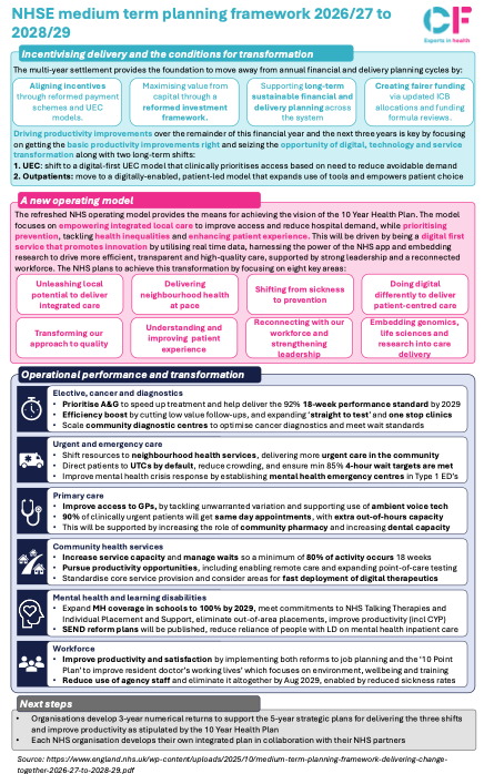 - Three-year operational plans: NHS organisations are expected to develop aligned plans that reflect national priorities and local needs.