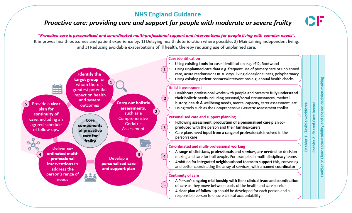 On the 19th of December, NHS England released guidance on developing a more consistent and integrated approach to proactive care across the country for people living with frailty. While not proposing novel services or pathways, the guidance aims to utilise existing resources, evidence and best practice to improve support to those with moderate or severe frailty.